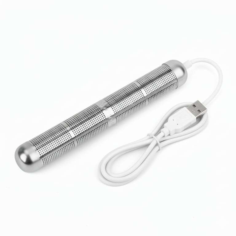 Billy é prático, seguro e pensado para uso diário: ligue em uma porta USB/USB-adapter, coloque o bastão no copo, gire suavemente (horário ou anti-horário) por alguns segundos, retire, desligue e beba.